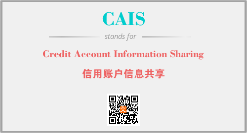 上述内容是“Credit Account Information Sharing”作为“CAIS”的缩写,解释为“信用账户信息共享”时的信息,以及英文缩略词CAIS所代表的英文单词,其对应的中文拼音、详细解释以及在英文中的流行度和相关分类、应用领域及应用示例等。