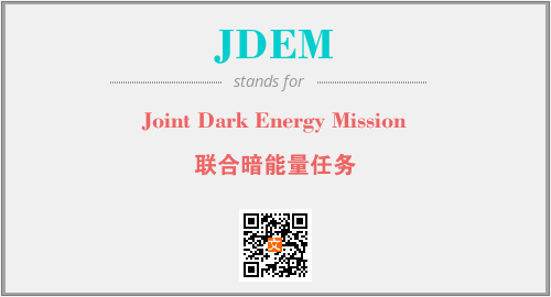 上述内容是“Joint Dark Energy Mission”作为“JDEM”的缩写,解释为“联合暗能量任务”时的信息,以及英文缩略词JDEM所代表的英文单词,其对应的中文拼音、详细解释以及在英文中的流行度和相关分类、应用领域及应用示例等。