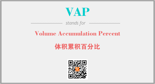 上述内容是“Volume Accumulation Percent”作为“VAP”的缩写,解释为“体积累积百分比”时的信息,以及英文缩略词VAP所代表的英文单词,其对应的中文拼音、详细解释以及在英文中的流行度和相关分类、应用领域及应用示例等。