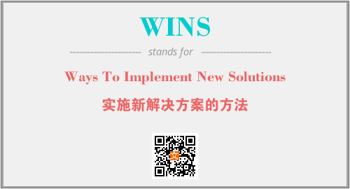 上述内容是“Ways To Implement New Solutions”作为“WINS”的缩写,解释为“实施新解决方案的方法”时的信息,以及英文缩略词WINS所代表的英文单词,其对应的中文拼音、详细解释以及在英文中的流行度和相关分类、应用领域及应用示例等。