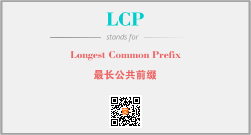 英文缩略词“LCP”经常作为“Longest Common Prefix”的英文缩写来使用,中文表示:“最长公共前缀”。本文将详细介绍英文缩写词LCP所代表英文单词,其对应的中文拼音、详细解释以及在英语中的流行度。此外,还有关于缩略词LCP的分类、应用领域及相关应用示例等。