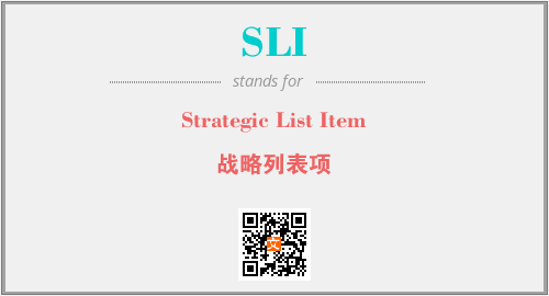 英文缩略词“SLI”经常作为“Strategic List Item”的英文缩写来使用,中文表示:“战略列表项”。本文将详细介绍英文缩写词SLI所代表英文单词,其对应的中文拼音、详细解释以及在英语中的流行度。此外,还有关于缩略词SLI的分类、应用领域及相关应用示例等。