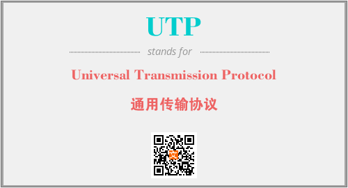 以上为Universal Transmission Protocol英文缩略词UTP的中文解释,以及该英文缩写在英语的流行度、分类和应用领域方面的信息。