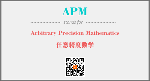 英文缩略词“APM”经常作为“Arbitrary Precision Mathematics”的英文缩写来使用,中文表示:“任意精度数学”。本文将详细介绍英文缩写词APM所代表英文单词,其对应的中文拼音、详细解释以及在英语中的流行度。此外,还有关于缩略词APM的分类、应用领域及相关应用示例等。