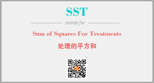 上述内容是“Sum of Squares For Treatments”作为“SST”的缩写,解释为“处理的平方和”时的信息,以及英文缩略词SST所代表的英文单词,其对应的中文拼音、详细解释以及在英文中的流行度和相关分类、应用领域及应用示例等。
