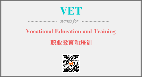 上述内容是“Vocational Education and Training”作为“VET”的缩写,解释为“职业教育和培训”时的信息,以及英文缩略词VET所代表的英文单词,其对应的中文拼音、详细解释以及在英文中的流行度和相关分类、应用领域及应用示例等。