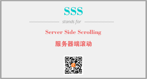 上述内容是“Server Side Scrolling”作为“SSS”的缩写,解释为“服务器端滚动”时的信息,以及英文缩略词SSS所代表的英文单词,其对应的中文拼音、详细解释以及在英文中的流行度和相关分类、应用领域及应用示例等。