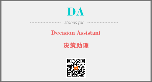 以上为Decision Assistant英文缩略词DA的中文解释,以及该英文缩写在英语的流行度、分类和应用领域方面的信息。