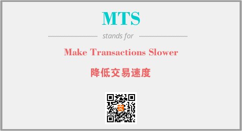 英文缩略词“MTS”经常作为“Make Transactions Slower”的英文缩写来使用,中文表示:“降低交易速度”。本文将详细介绍英文缩写词MTS所代表英文单词,其对应的中文拼音、详细解释以及在英语中的流行度。此外,还有关于缩略词MTS的分类、应用领域及相关应用示例等。