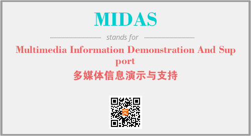 上述内容是“Multimedia Information Demonstration And Support”作为“MIDAS”的缩写,解释为“多媒体信息演示与支持”时的信息,以及英文缩略词MIDAS所代表的英文单词,其对应的中文拼音、详细解释以及在英文中的流行度和相关分类、应用领域及应用示例等。
