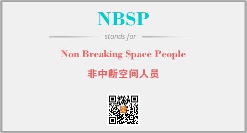 上述内容是“Non Breaking Space People”作为“NBSP”的缩写,解释为“非中断空间人员”时的信息,以及英文缩略词NBSP所代表的英文单词,其对应的中文拼音、详细解释以及在英文中的流行度和相关分类、应用领域及应用示例等。
