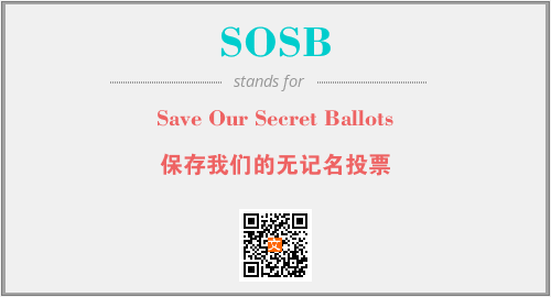 以上为Save Our Secret Ballots英文缩略词SOSB的中文解释,以及该英文缩写在英语的流行度、分类和应用领域方面的信息。