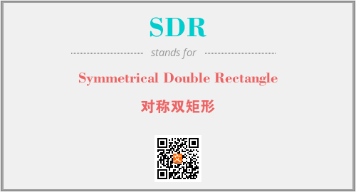 上述内容是“Symmetrical Double Rectangle”作为“SDR”的缩写,解释为“对称双矩形”时的信息,以及英文缩略词SDR所代表的英文单词,其对应的中文拼音、详细解释以及在英文中的流行度和相关分类、应用领域及应用示例等。