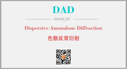 英文缩略词“DAD”经常作为“Dispersive Anomalous Diffraction”的英文缩写来使用,中文表示:“色散反常衍射”。本文将详细介绍英文缩写词DAD所代表英文单词,其对应的中文拼音、详细解释以及在英语中的流行度。此外,还有关于缩略词DAD的分类、应用领域及相关应用示例等。