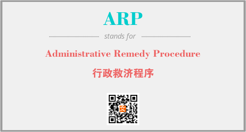 以上为Administrative Remedy Procedure英文缩略词ARP的中文解释,以及该英文缩写在英语的流行度、分类和应用领域方面的信息。