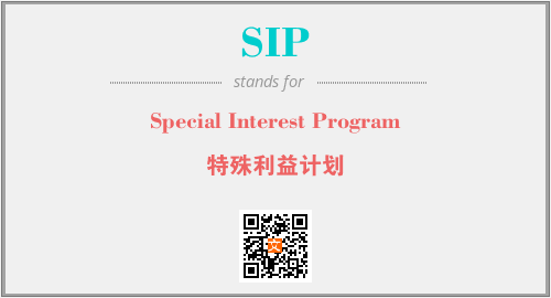 上述内容是“Special Interest Program”作为“SIP”的缩写,解释为“特殊利益计划”时的信息,以及英文缩略词SIP所代表的英文单词,其对应的中文拼音、详细解释以及在英文中的流行度和相关分类、应用领域及应用示例等。