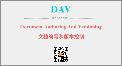 英文缩略词“DAV”经常作为“Document Authoring And Versioning”的英文缩写来使用,中文表示:“文档编写和版本控制”。本文将详细介绍英文缩写词DAV所代表英文单词,其对应的中文拼音、详细解释以及在英语中的流行度。此外,还有关于缩略词DAV的分类、应用领域及相关应用示例等。