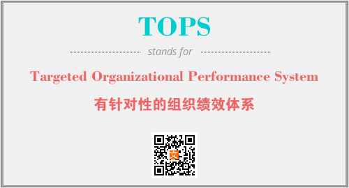 上述内容是“Targeted Organizational Performance System”作为“TOPS”的缩写,解释为“有针对性的组织绩效体系”时的信息,以及英文缩略词TOPS所代表的英文单词,其对应的中文拼音、详细解释以及在英文中的流行度和相关分类、应用领域及应用示例等。