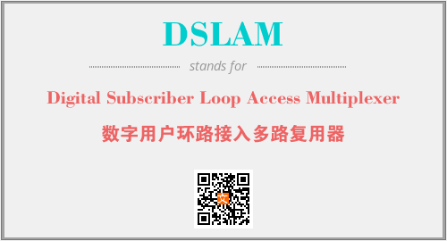 英文缩略词“DSLAM”经常作为“Digital Subscriber Loop Access Multiplexer”的英文缩写来使用,中文表示:“数字用户环路接入多路复用器”。本文将详细介绍英文缩写词DSLAM所代表英文单词,其对应的中文拼音、详细解释以及在英语中的流行度。此外,还有关于缩略词DSLAM的分类、应用领域及相关应用示例等。