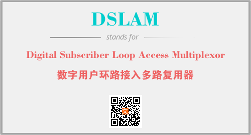 英文缩略词“DSLAM”经常作为“Digital Subscriber Loop Access Multiplexor”的英文缩写来使用,中文表示:“数字用户环路接入多路复用器”。本文将详细介绍英文缩写词DSLAM所代表英文单词,其对应的中文拼音、详细解释以及在英语中的流行度。此外,还有关于缩略词DSLAM的分类、应用领域及相关应用示例等。