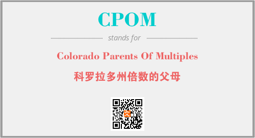 英文缩略词“CPOM”经常作为“Colorado Parents Of Multiples”的英文缩写来使用,中文表示:“科罗拉多州倍数的父母”。本文将详细介绍英文缩写词CPOM所代表英文单词,其对应的中文拼音、详细解释以及在英语中的流行度。此外,还有关于缩略词CPOM的分类、应用领域及相关应用示例等。