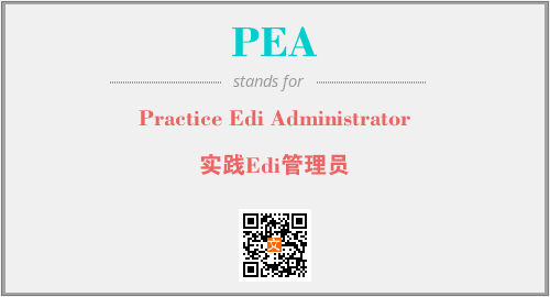 英文缩略词“PEA”经常作为“Practice Edi Administrator”的英文缩写来使用,中文表示:“实践Edi管理员”。本文将详细介绍英文缩写词PEA所代表英文单词,其对应的中文拼音、详细解释以及在英语中的流行度。此外,还有关于缩略词PEA的分类、应用领域及相关应用示例等。