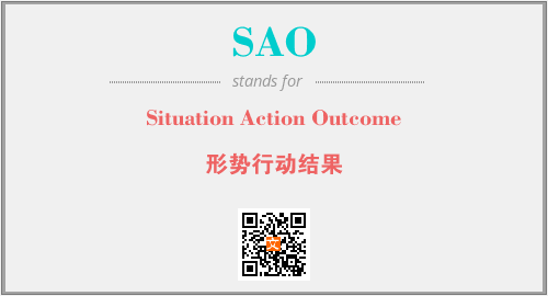 上述内容是“Situation Action Outcome”作为“SAO”的缩写,解释为“形势行动结果”时的信息,以及英文缩略词SAO所代表的英文单词,其对应的中文拼音、详细解释以及在英文中的流行度和相关分类、应用领域及应用示例等。