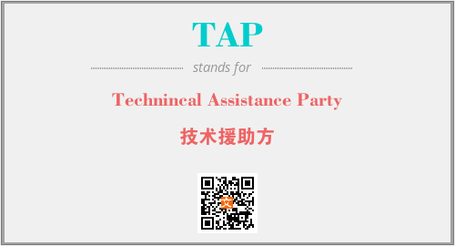 英文缩略词“TAP”经常作为“Technincal Assistance Party”的英文缩写来使用,中文表示:“技术援助方”。本文将详细介绍英文缩写词TAP所代表英文单词,其对应的中文拼音、详细解释以及在英语中的流行度。此外,还有关于缩略词TAP的分类、应用领域及相关应用示例等。