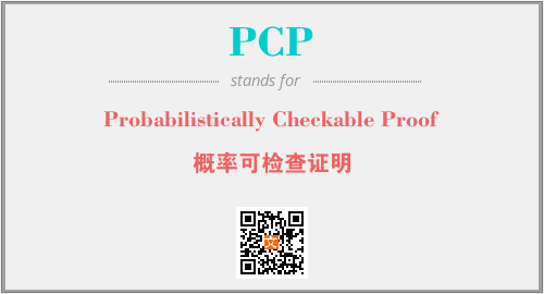 英文缩略词“PCP”经常作为“Probabilistically Checkable Proof”的英文缩写来使用,中文表示:“概率可检查证明”。本文将详细介绍英文缩写词PCP所代表英文单词,其对应的中文拼音、详细解释以及在英语中的流行度。此外,还有关于缩略词PCP的分类、应用领域及相关应用示例等。