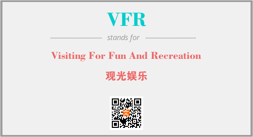 英文缩略词“VFR”经常作为“Visiting For Fun And Recreation”的英文缩写来使用,中文表示:“观光娱乐”。本文将详细介绍英文缩写词VFR所代表英文单词,其对应的中文拼音、详细解释以及在英语中的流行度。此外,还有关于缩略词VFR的分类、应用领域及相关应用示例等。