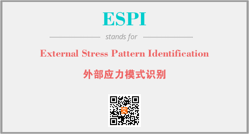 上述内容是“External Stress Pattern Identification”作为“ESPI”的缩写,解释为“外部应力模式识别”时的信息,以及英文缩略词ESPI所代表的英文单词,其对应的中文拼音、详细解释以及在英文中的流行度和相关分类、应用领域及应用示例等。