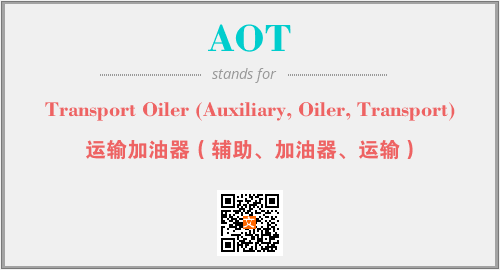 上述内容是“Transport Oiler (Auxiliary, Oiler, Transport)”作为“AOT”的缩写,解释为“运输加油器(辅助、加油器、运输)”时的信息,以及英文缩略词AOT所代表的英文单词,其对应的中文拼音、详细解释以及在英文中的流行度和相关分类、应用领域及应用示例等。
