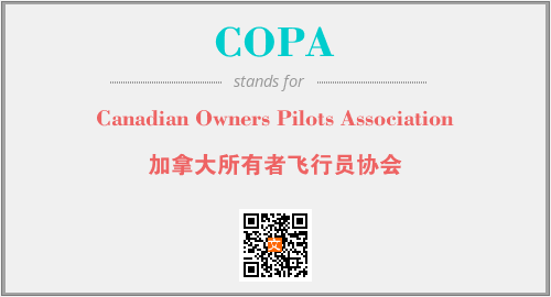 英文缩略词“COPA”经常作为“Canadian Owners Pilots Association”的英文缩写来使用,中文表示:“加拿大所有者飞行员协会”。本文将详细介绍英文缩写词COPA所代表英文单词,其对应的中文拼音、详细解释以及在英语中的流行度。此外,还有关于缩略词COPA的分类、应用领域及相关应用示例等。