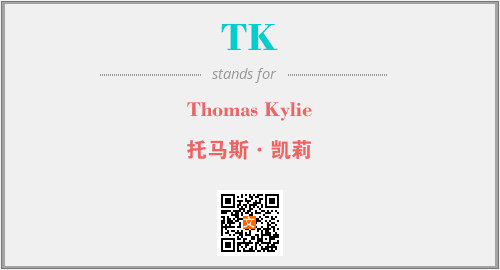 上述内容是“Thomas Kylie”作为“TK”的缩写,解释为“托马斯·凯莉”时的信息,以及英文缩略词TK所代表的英文单词,其对应的中文拼音、详细解释以及在英文中的流行度和相关分类、应用领域及应用示例等。