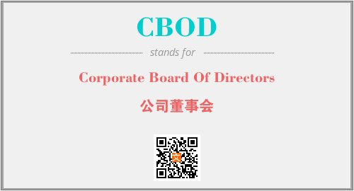 英文缩略词“CBOD”经常作为“Corporate Board Of Directors”的英文缩写来使用,中文表示:“公司董事会”。本文将详细介绍英文缩写词CBOD所代表英文单词,其对应的中文拼音、详细解释以及在英语中的流行度。此外,还有关于缩略词CBOD的分类、应用领域及相关应用示例等。