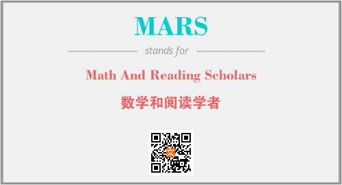 英文缩略词“MARS”经常作为“Math And Reading Scholars”的英文缩写来使用,中文表示:“数学和阅读学者”。本文将详细介绍英文缩写词MARS所代表英文单词,其对应的中文拼音、详细解释以及在英语中的流行度。此外,还有关于缩略词MARS的分类、应用领域及相关应用示例等。