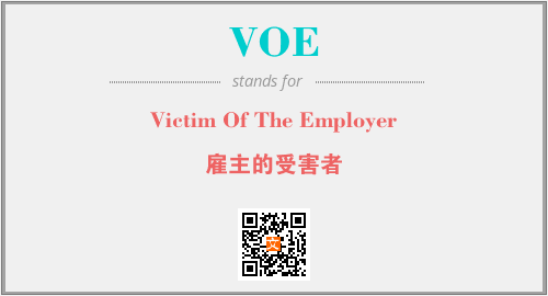 以上为Victim Of The Employer英文缩略词VOE的中文解释,以及该英文缩写在英语的流行度、分类和应用领域方面的信息。