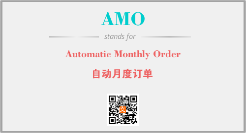 上述内容是“Automatic Monthly Order”作为“AMO”的缩写,解释为“自动月度订单”时的信息,以及英文缩略词AMO所代表的英文单词,其对应的中文拼音、详细解释以及在英文中的流行度和相关分类、应用领域及应用示例等。