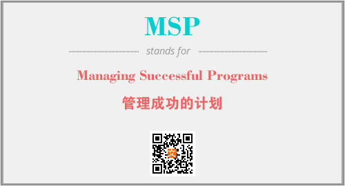 英文缩略词“MSP”经常作为“Managing Successful Programs”的英文缩写来使用,中文表示:“管理成功的计划”。本文将详细介绍英文缩写词MSP所代表英文单词,其对应的中文拼音、详细解释以及在英语中的流行度。此外,还有关于缩略词MSP的分类、应用领域及相关应用示例等。