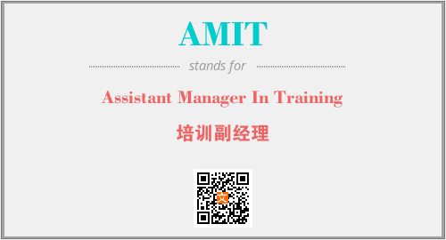 以上为Assistant Manager In Training英文缩略词AMIT的中文解释,以及该英文缩写在英语的流行度、分类和应用领域方面的信息。