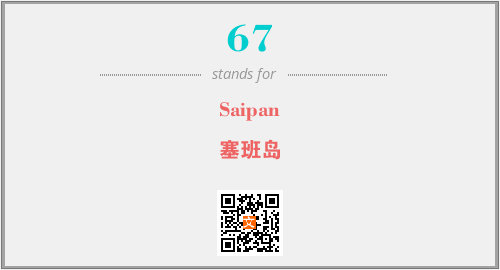 英文缩略词“67”经常作为“Saipan”的英文缩写来使用,中文表示:“塞班岛”。本文将详细介绍英文缩写词67所代表英文单词,其对应的中文拼音、详细解释以及在英语中的流行度。此外,还有关于缩略词67的分类、应用领域及相关应用示例等。