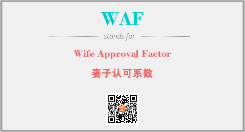 英文缩略词“WAF”经常作为“Wife Approval Factor”的英文缩写来使用,中文表示:“妻子认可系数”。本文将详细介绍英文缩写词WAF所代表英文单词,其对应的中文拼音、详细解释以及在英语中的流行度。此外,还有关于缩略词WAF的分类、应用领域及相关应用示例等。