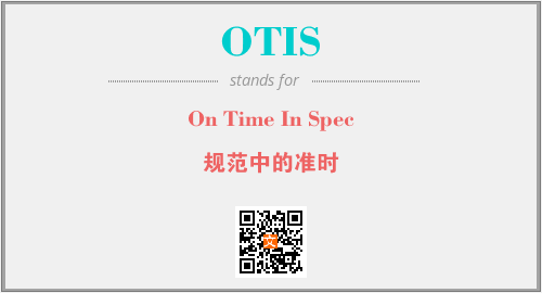 英文缩略词“OTIS”经常作为“On Time In Spec”的英文缩写来使用,中文表示:“规范中的准时”。本文将详细介绍英文缩写词OTIS所代表英文单词,其对应的中文拼音、详细解释以及在英语中的流行度。此外,还有关于缩略词OTIS的分类、应用领域及相关应用示例等。