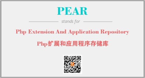 上述内容是“Php Extension And Application Repository”作为“PEAR”的缩写,解释为“Php扩展和应用程序存储库”时的信息,以及英文缩略词PEAR所代表的英文单词,其对应的中文拼音、详细解释以及在英文中的流行度和相关分类、应用领域及应用示例等。