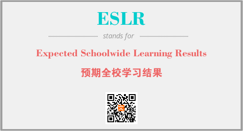 上述内容是“Expected Schoolwide Learning Results”作为“ESLR”的缩写,解释为“预期全校学习结果”时的信息,以及英文缩略词ESLR所代表的英文单词,其对应的中文拼音、详细解释以及在英文中的流行度和相关分类、应用领域及应用示例等。