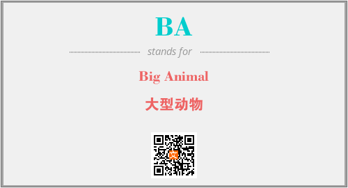 上述内容是“Big Animal”作为“BA”的缩写,解释为“大型动物”时的信息,以及英文缩略词BA所代表的英文单词,其对应的中文拼音、详细解释以及在英文中的流行度和相关分类、应用领域及应用示例等。
