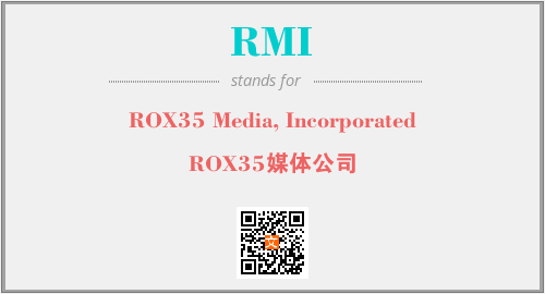 英文缩略词“RMI”经常作为“ROX35 Media, Incorporated”的英文缩写来使用,中文表示:“ROX35媒体公司”。本文将详细介绍英文缩写词RMI所代表英文单词,其对应的中文拼音、详细解释以及在英语中的流行度。此外,还有关于缩略词RMI的分类、应用领域及相关应用示例等。