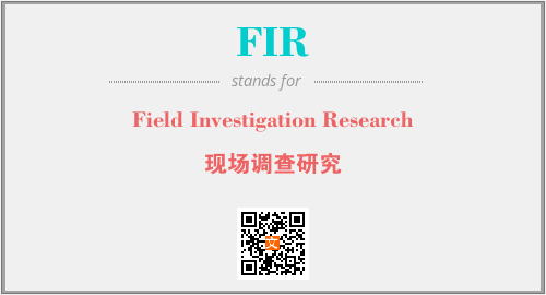 以上为Field Investigation Research英文缩略词FIR的中文解释,以及该英文缩写在英语的流行度、分类和应用领域方面的信息。