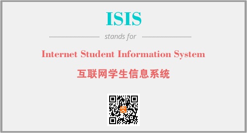 英文缩略词“ISIS”经常作为“Internet Student Information System”的英文缩写来使用,中文表示:“互联网学生信息系统”。本文将详细介绍英文缩写词ISIS所代表英文单词,其对应的中文拼音、详细解释以及在英语中的流行度。此外,还有关于缩略词ISIS的分类、应用领域及相关应用示例等。