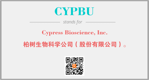 上述内容是“Cypress Bioscience, Inc.”作为“CYPBU”的缩写,解释为“柏树生物科学公司(股份有限公司)。”时的信息,以及英文缩略词CYPBU所代表的英文单词,其对应的中文拼音、详细解释以及在英文中的流行度和相关分类、应用领域及应用示例等。